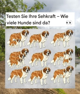Kannst du alle Hunde entdecken? Teste deine Beobachtungsgabe! Auf den ersten Blick wirkt dieses Bild wie eine einfache Reihe von Bernhardinern – neun, vielleicht?...