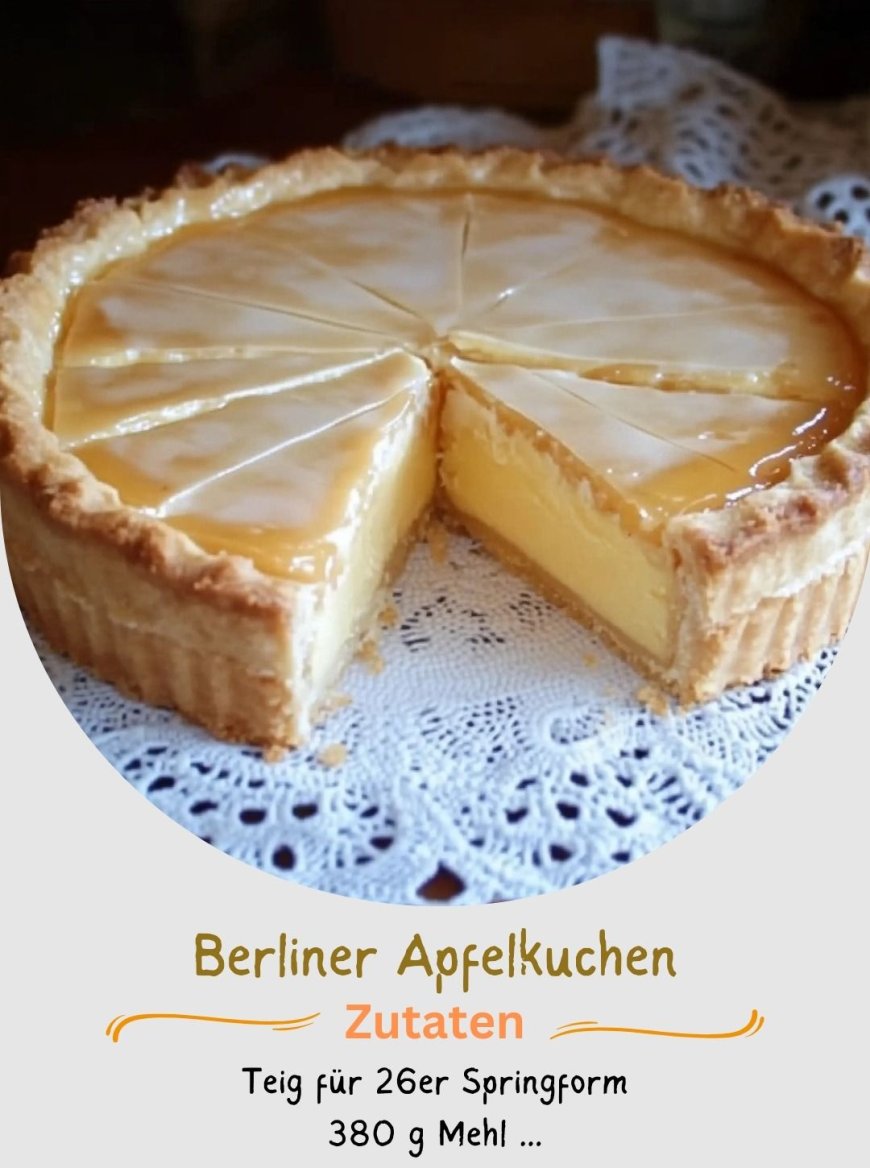 Der Berliner Apfelkuchen ist ein traditionelles Rezept, das durch seine schlichte Zubereitung und den unvergleichlich fruchtigen Geschmack besticht. Zwischen zwei Schichten feinem Mürbeteig verbirgt sich eine köstliche Füllung aus Apfelmus, die nach Belieben mit Zimt und Rosinen verfeinert wird. Die Kombination aus zarter Teighülle und saftiger Apfelfüllung macht diesen Kuchen zu einem echten Familienliebling. Abgerundet wird das Ganze mit einer leichten Zuckerglasur, die für ein harmonisches Süße-Säure-Spiel sorgt. Ob zum Sonntagskaffee, als Mitbringsel oder einfach für den eigenen Genuss – dieser Kuchen bringt ein Stück Berliner Backkultur direkt auf den Tisch.