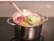 In einer großen Pfanne den Esslöffel Öl hinzufügen, dann die Garnelen 1 Minute pro Seite braten.