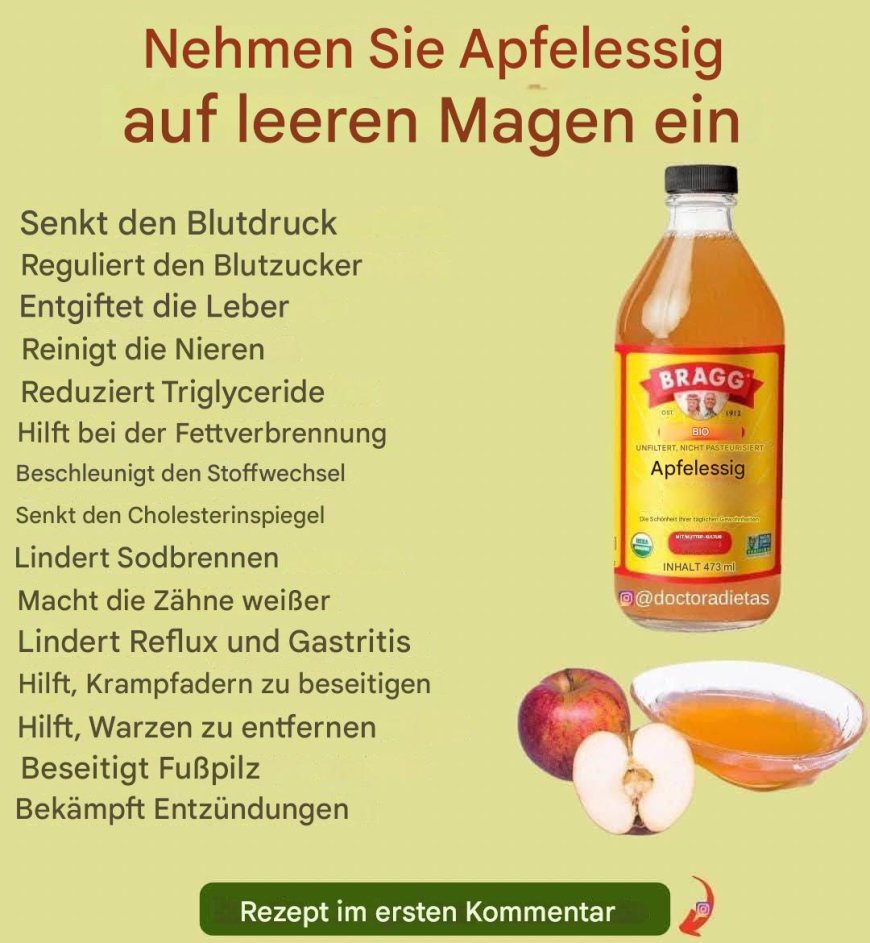 Heute sprechen wir über die wunderbaren, fast wundersamen Verwendungsmöglichkeiten von Apfelessig, die Sie wahrscheinlich noch nicht kannten. Apfelessig ist nicht nur als Gewürz für Speisen bekannt, sondern bietet auch wunderbare Anwendungsmöglichkeiten, die Sie überraschen werden. Ich versichere Ihnen, Sie werden es noch heute verwenden wollen.