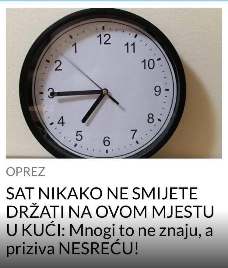 Ako je sat pravilno postavljen, on postaje saveznik u harmoniji prostora: pomaže ukućanima da usklade planove, ostanu motivisani i zadrže osećaj kontrole nad svojim vremenom. S druge strane, pogrešno postavljen sat, ili – još gore – onaj koji je stao i ne radi, smatra se izuzetno nepovoljnim jer može da blokira protok pozitivne energije (chi), izazove osećaj stagnacije, pa čak i simbolično privuče nesreću.